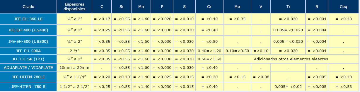 * Ideal para partes estructurales de volquetes, cargadores, tractores y todo elemento que necesite una alta resistencia.