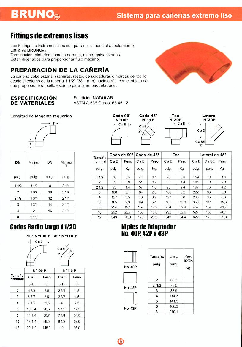 Fittings de extremos lisos. Especificación de materiales, codos, niples