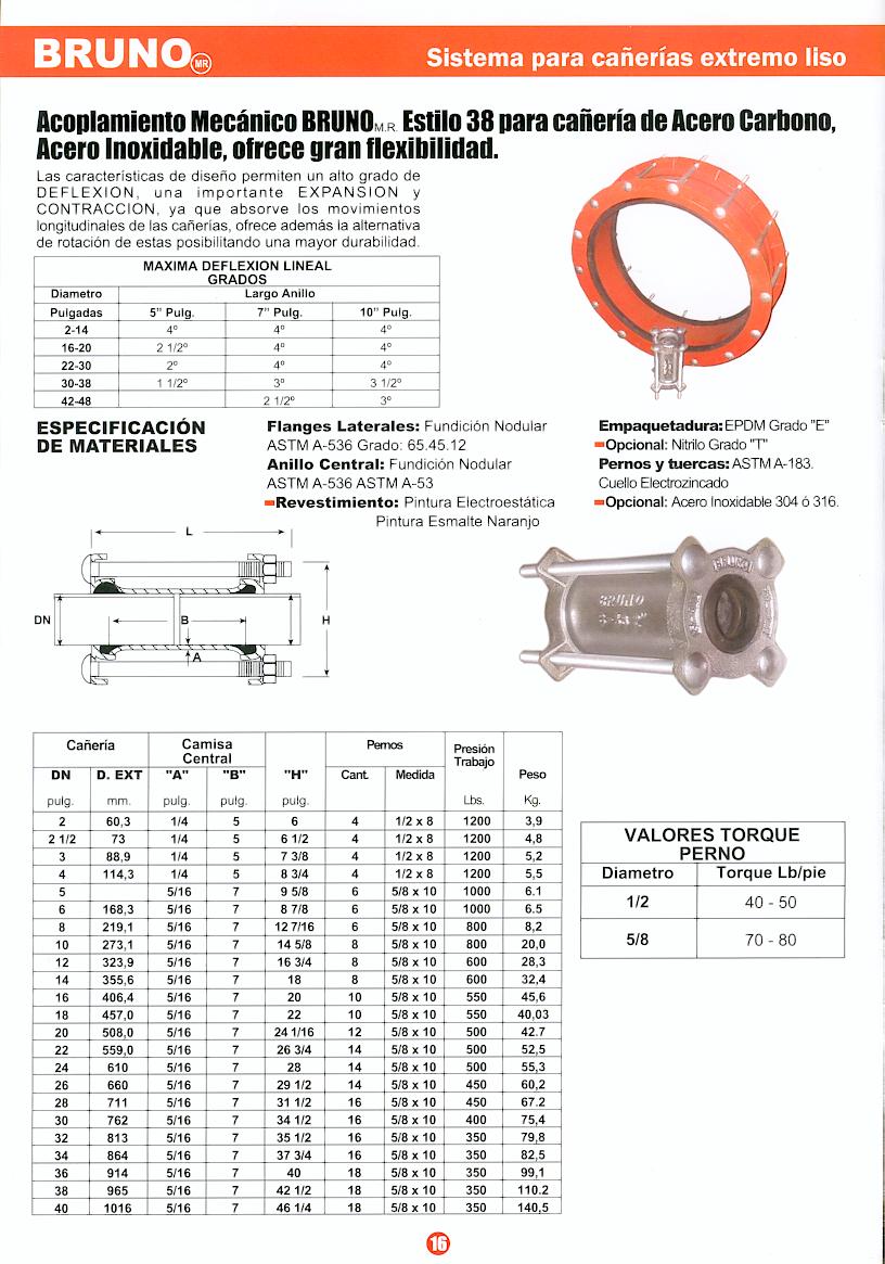 Acoplamiento para cañerías de acero carbono y acero inoxidable con extremos lisos o biselados