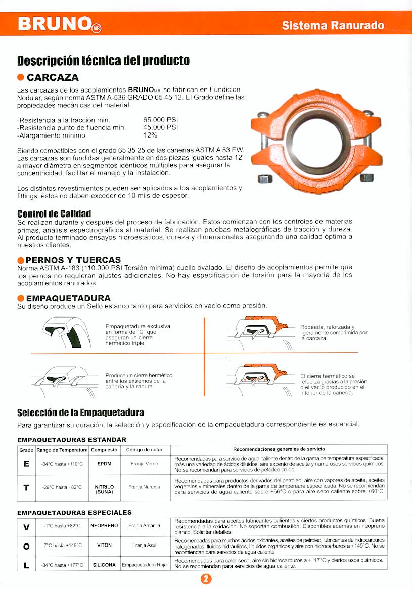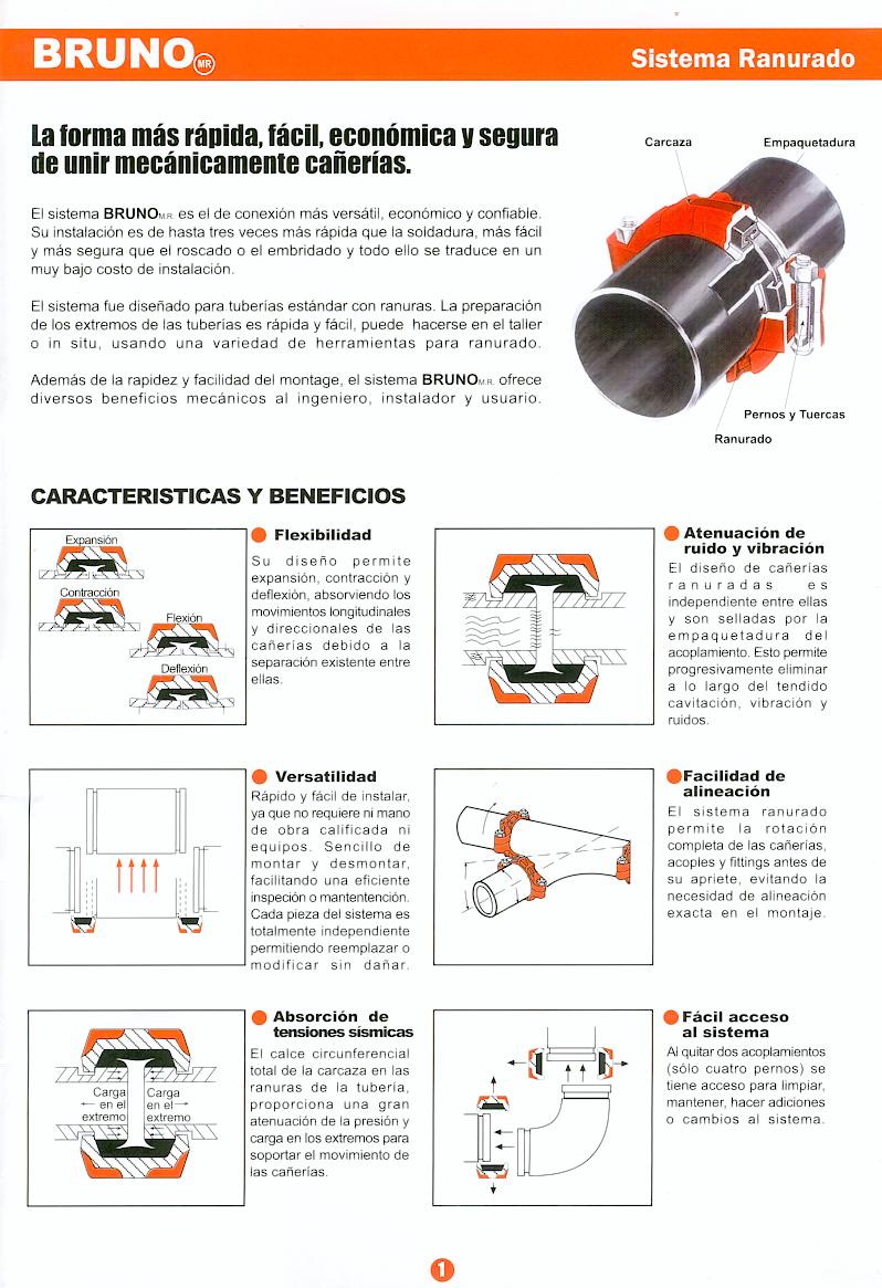 Acoplamiento Flexible para tuberías de acero. Bruno_estilo 77 El sistema BRUNO es el de conexión más versátil, económico y confiable.